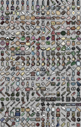 This pack is a collection of wide range of consumable items at 16x16, which include (now):